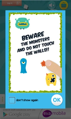 Run away from hungry Monsters - they want to catch you !!! Don't touch the Monsters and be as fast as you can. Post your score for all the world to see how far you can get.
