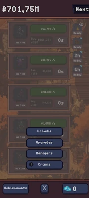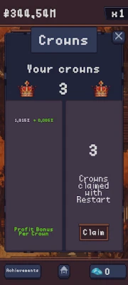 Ready for a challenge? Prestige to reset your progress and earn Crowns – permanent bonuses that supercharge your gold production!