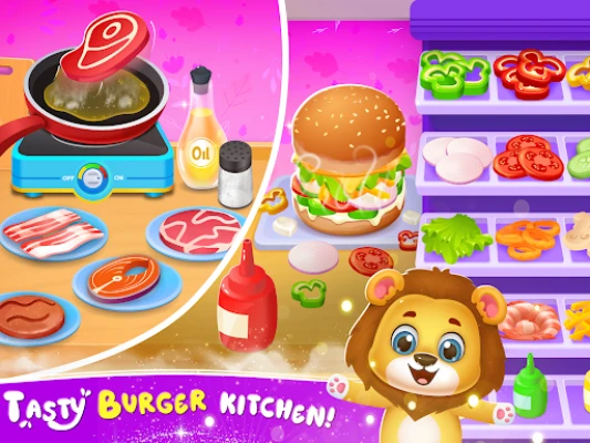 • Bright graphics and gentle animations keep little cooks engaged.
