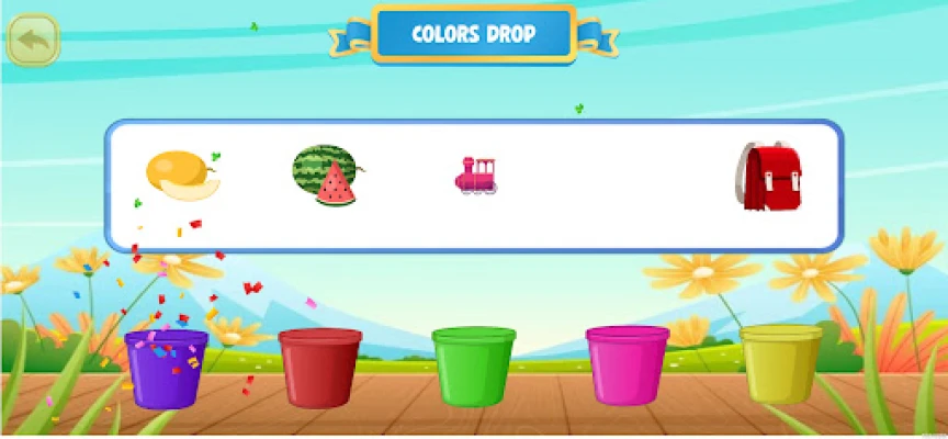 Color Sorting: Match toys and fruits to their corresponding colored buckets.