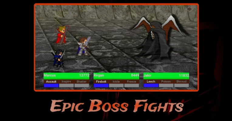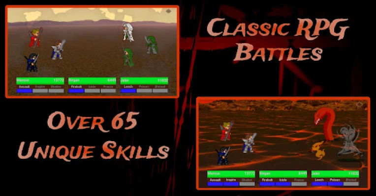 - Classic RPG battle system adapted to mobile