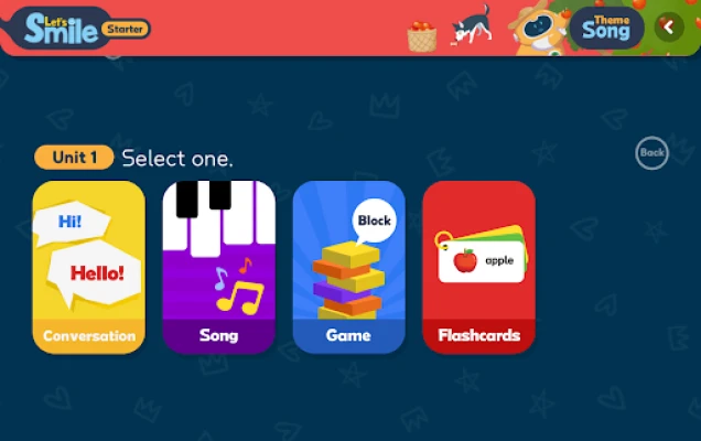• Conversation: Incorporates conversational language and unit targets in an authentic dialog, catchy song, and a collaborative game