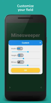 - Levels with full customization of the playing field, where you can customize the width, height of the field and the number of mines(bombs)