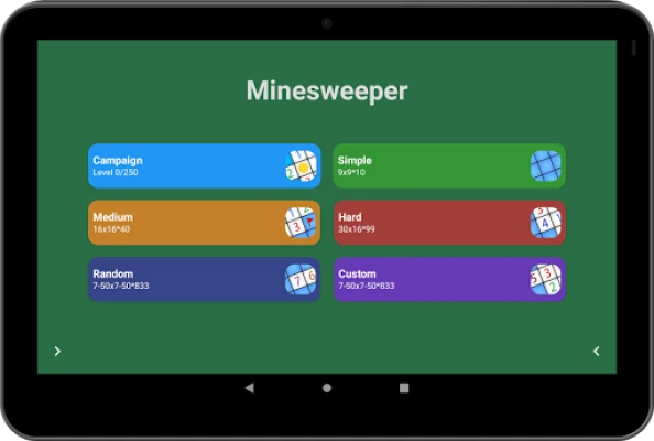 - Three difficulty levels from the old classic minesweeper