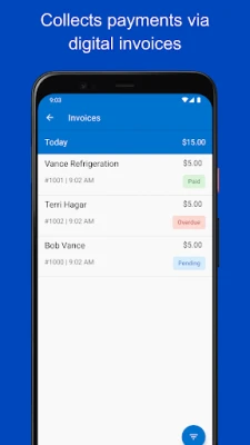 • Digital Invoices - Deliver invoices via SMS or email to customers who can pay from a mobile device or desktop computer anywhere