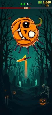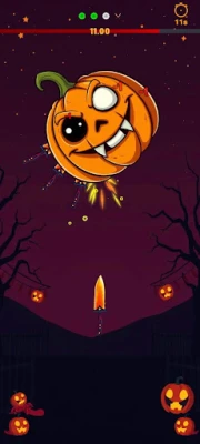 Throw knives at spinning pumpkin monsters, avoid hitting your own blades, and defeat scary bosses in each level. With easy one-tap controls and smooth gameplay, it's perfect for both casual players and hardcore arcade fans!