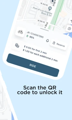HOW IT WORKS Download the app and create an account. Scan the QR code or enter the device ID number to unlock your ride. Ride safe! Don’t forget to wear a helmet. Lock the bike to any rack to end your ride.
