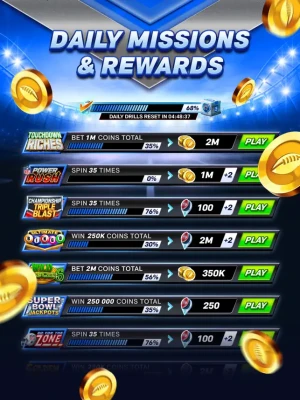 Take part in exclusive slots game tournaments and missions designed to challenge social casino enthusiasts. Earn free spins, climb the ranks, and become the ultimate jackpot winner! Celebrate every big win with football-themed slot machine games that blend NFL passion with slots and casino games action.