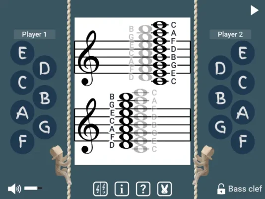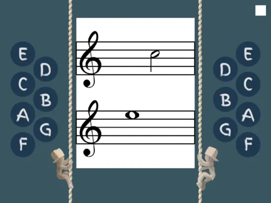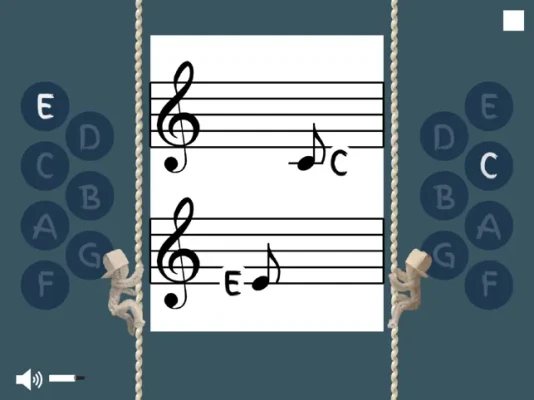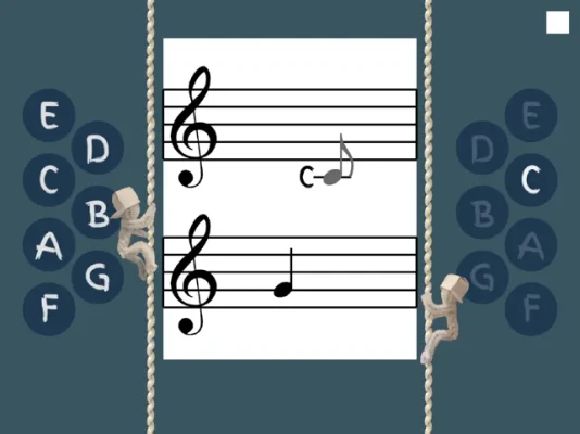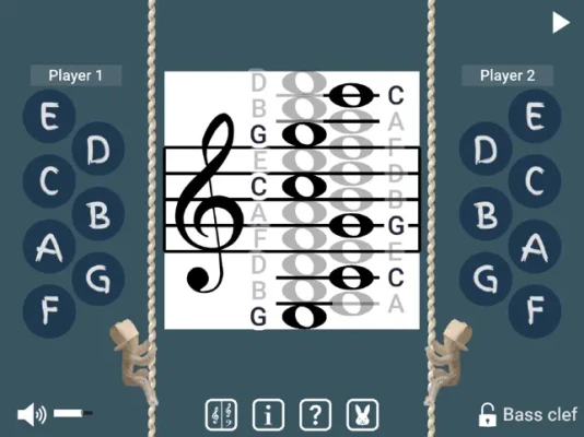 Have fun playing this 2-player game to learn notes on the treble clef.Grab a friend and race to see whose character climbs to the top of the rope faster. Each note you get correct moves you up the rope, while wrong answers make you slide down.