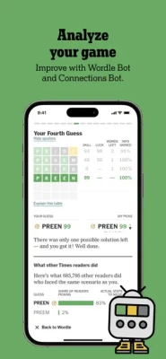 - Analyze your guesses and improve your skills with Wordle Bot.