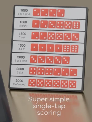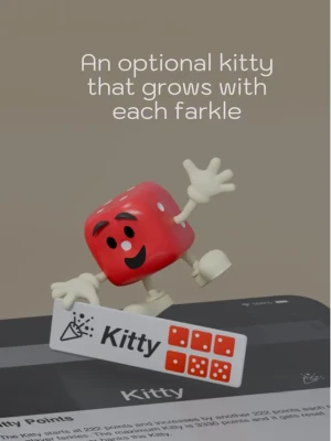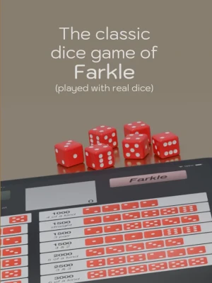 Farkle is a classic dice game played with 6 real dice. Players take turns rolling the dice. Certain combinations of dice score points. The challenge is deciding whether to keep the points or risk rolling again for more points.