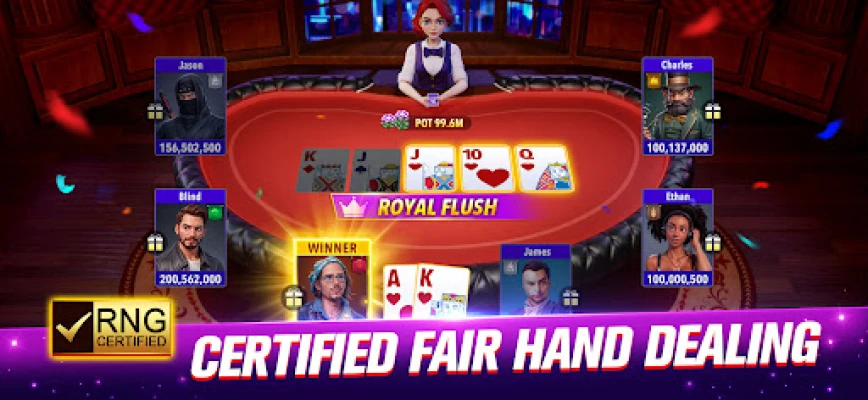• Fair Play: The card shuffling algorithm is certified by GLI Labs, ensuring a fair and clean game. You can check the certification by going to the in-game Settings > Certification!