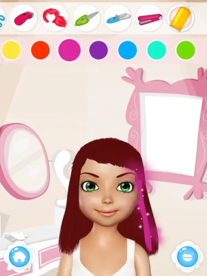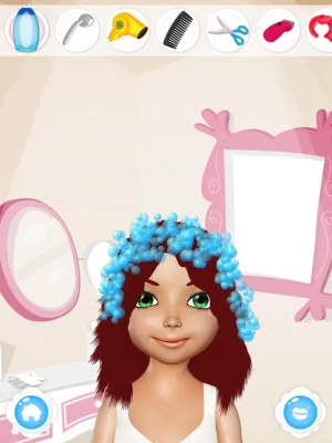 Every girl wants to have perfect hair. You can start by washing and blow-drying your princess's hair. If you cut or thin out her hair, you will be able to use magic elixir. You have to see this for yourself. Feel free to style her hair any way you want. You can tint it and create a luxuriant, thick, curly, short, dishevelled, straight or ruffled hairstyle.