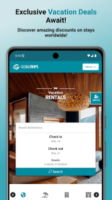 Planning your next getaway? Private Rentals by GlobalTrips is your ultimate travel companion, offering exclusive access to wholesale rates on vacation rentals across the USA. Find your ideal property at significantly discounted prices. Whether you're dreaming of a beachfront condo, a cozy mountain cabin, or a chic city apartment, our app connects you to the perfect accommodation without breaking the bank.
