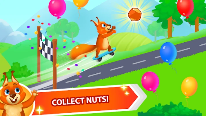 And what about kids learning? There are numbers from 0 to 9 scattered along the route, and the Squirrel should catch them all to get the ultimate bonuses. Your child will love learning numbers in this playful and entertaining form! Live hilarious colorful numbers, they are laughing and waving to you! The Squirrel race will certainly spark kids’ curiosity, boost their cognitive skills, develop fine motor skills and make learning a fun and exciting adventure!