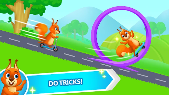 At the beginning of the race your kid has to choose a transport for the Squirrel-rider. The kick scooter is available by default yet if little kids wish to upgrade to a longboard or a wagon, they can pay for it with golden hazelnuts. The good news is, golden hazelnuts are easy to get - they can be earned by visiting the game regularly or completing levels, so your child can enjoy the game without breaking the bank!