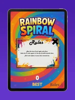 With every point you score, the spiral speeds up, the colors come quicker, and your focus is put to the ultimate test. Perfect for fans of reflex and reaction-based games, Rainbow Spiral delivers a vibrant challenge you won’t want to put down.