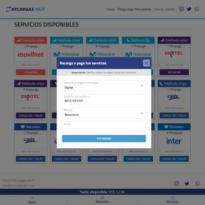 🚀 Somos una plataforma digital creada para que personas, emprendimientos y/o comercios puedan vender recargas de saldo y pago de servicios de telefonía, internet y televisión.