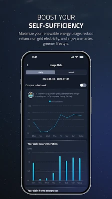 - see how much energy your solar panels are producing and the current levels of storage in your batteries (when connected) - determine the amount of energy you are either buying or selling to or from the grid - view your monthly data from the last two years - view your daily data from the last two weeks - easily check that your system is operating correctly