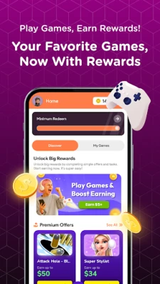 🎮 Play & Earn: Explore game offers & enjoy exciting games. Earn points for every minute you play! The more you play, the more rewards you collect!