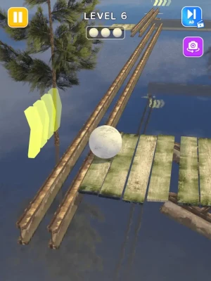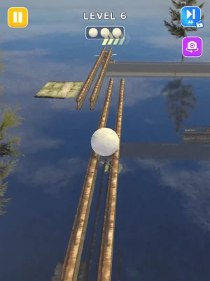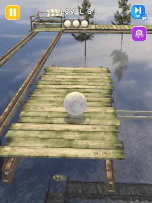 Rolling Balance Ball is a fun game where you need to keep the ball balanced and get it to the boat while avoiding traps. You're surrounded by water, and you must guide the ball across wooden bridges without falling into the water.