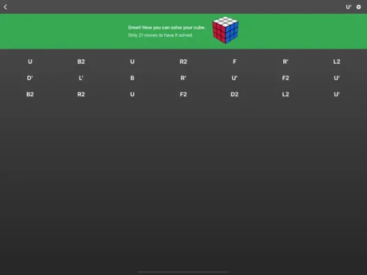 This app will help you to solve your cube 3x3. The best algorithms will find the optimal solution, with 22 moves or less!
