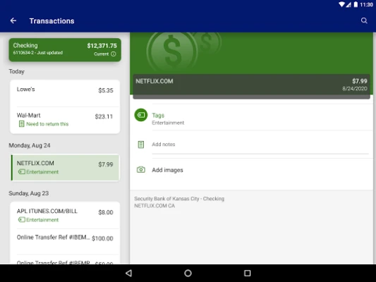 Keep your transactions organized by allowing you to add tags, notes and photos of receipts and checks.