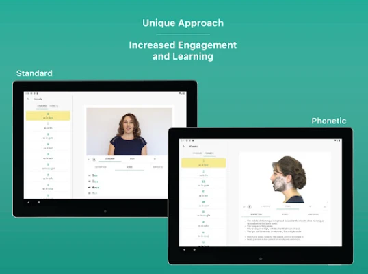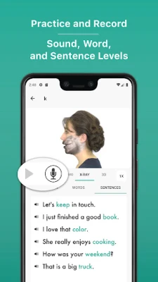 With the ability to see inside the mouth so you can easily mimic what you're seeing, SSV provides a unique experience that makes it easy to both follow along and master the specific pronunciation of each sound. In addition, you also have the ability to record and listen back to your performance to assist your pronunciation to perfection.