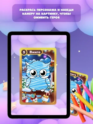 4) После того, как включится камера, наведи телефон или планшет на карточку с изображением раскрашенного персонажа. Убедись что в комнате достаточно светло, а карточка лежит ровно.