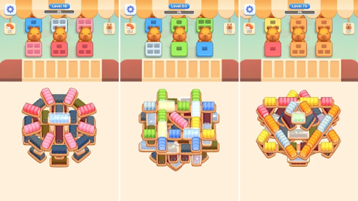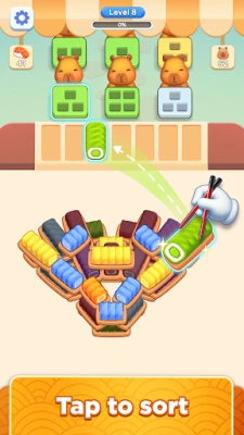 Step into delightful world of Sushi Jam: Color Sort, a fresh twist in the realm of sushi game! In this addictive puzzle, every tap turns sushi roll into color pieces & fill matching plates. With capybaras lining up, Sushi Jam: Color Sort challenges you to master color sort logic and become the ultimate sushi master.
