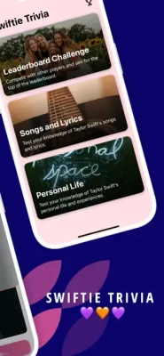 * Trivia Questions: Test your knowledge with challenging trivia questions spanning Taylor Swift's illustrious career. From song lyrics to personal anecdotes, see how well you know your favorite artist. See if you can make the Leaderboard!
