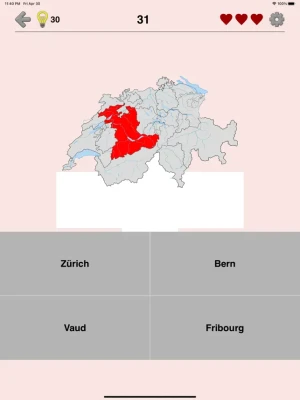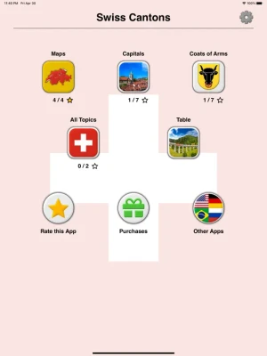 The app is translated into 9 languages, including English as well as the official languages of Switzerland: German, French, and Italian. So you can learn the names of the Swiss cantons in any of them.