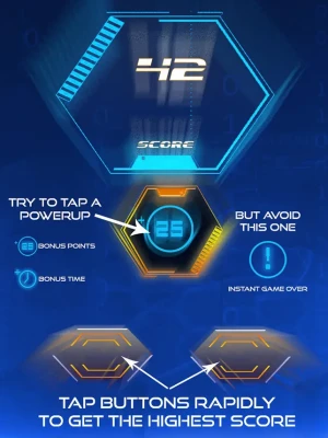 Players take turns tapping the buttons in rapid succession to determine who can score the highest number of “Fast Dash Taps” in 10 seconds. There’s also Power Ups that appear in random order: additional bonus time, gain 25 points, and Game Kill - tap at your own risk, or it may be game over for you.