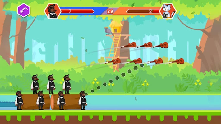 The game perfectly restores the core essence of this ancient competition. Players need to precisely control the launch angle and force by sliding their fingers - when lightly tapping the screen, the dynamic crosshair will display a parabolic trajectory in real time; Long distance dragging can accumulate strength; At the moment of releasing the finger, the weapon will fly towards the enemy's position along the predetermined trajectory. When the weapon accurately hits the opponent's flag or key target, the opponent will fall. When all members or symbols of the opponent fall, the player wins. This work innovatively combines historical culture with physical simulation, retaining the traditional competitive core of "angle force" dual dimensional operation, while presenting the agile posture of animal athletes - you can see the cheetah athlete's taut muscle lines when charging, witness the owl referee's gorgeous posture when spreading his wings to determine the score, and even feel the majestic momentum of the hippopotamus athlete's heavy impact on the ground triggering the shaking screen effect. Each duel is not only a competition of skills, but also a vivid inheritance of the millennium civilization of the animal kingdom. Now, hold onto the virtual bowstring symbolizing the certificate of bravery and write your own epic on this land filled with legends!