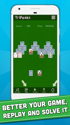 Add TriPeaks Solitaire to your collection of classic card games and you’ll have a great puzzle that is easy to play and re-play. For an additional challenge, try to beat the score of the other players in the leaderboard. Use the undo and replay functionalities to better your time or solve a puzzle that looked impossible.
