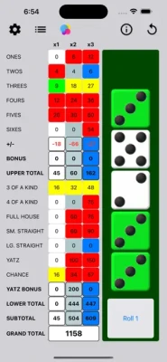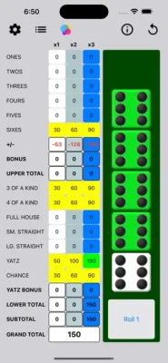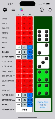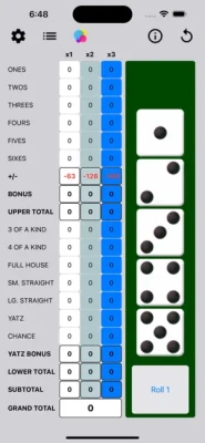 Triple Yatz is similar to YAHTZEE* (aka Yatzy, Yaht & Yacht) except that there are three scoring columns for each game instead of the just one. Columns 2 & 3 multiply the category scores by 2x & 3x. Complete a game in 39 turns of up to 3 rolls & maximize your game total by strategically applying scores in the column where you'll get the best result.