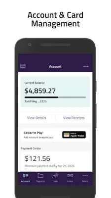 Truist Commercial Card Management App users may view their account balances, available credit, and credit limits. In addition, users may create and submit expense reports.
