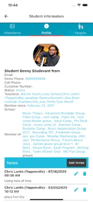 Easy Attendance: From the Dashboard you can swipe right or left to take quick attendance or more detailed report of your scheduled lessons and classes.