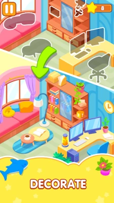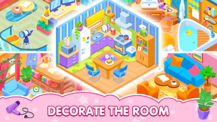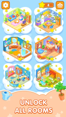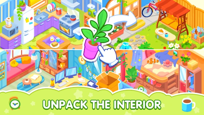 🌿 Beautiful decor in a cozy game: hundreds of unique items—from quirky furniture to cute little things that give the room character.