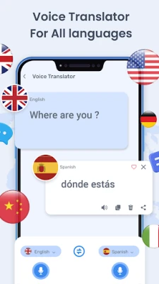 My Voice Translator app can be used to learn new languages and make friends worldwide without worrying about language gaps.