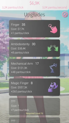• High quality images with sexy girls in anime style • Tap and sell panties (pantsu) - Earn money to your wallet • Increase your level - Then you can have more opportunities (new clothes, upgrades, buildings, random bonuses) • Choose one of several girls - You have a difficult choice... Who will you choose? • Are you risky one? - Roll the dice and try your luck • Random events and more