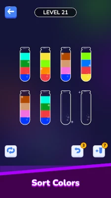 - Intuitive Gameplay: Easy-to-understand mechanics make it suitable for players of all ages. Move colored water between tubes to sort them by color.