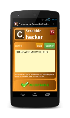 Features ------------ • Fast word checking • Easy to use • Allow multiple words in single check • Word length up to 15 letters • Share words from other apps • No internet require (use local dictionary files) • Support dictionaries: ODS7, ODS8, ODS9