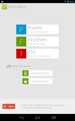 • Time trial: Random list of words to search for. This is great for casual word searchers who are looking for an infinite puzzle to complete.